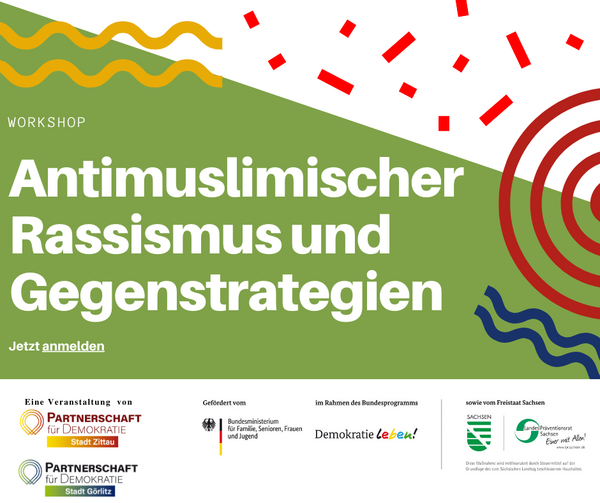 Der Workshop wird von den Partnerschaften für Demokratie Stadt Görlitz und Zittau organisiert und im Rahmen des Bundesprogramms "Demokratie leben!" aus Mitteln des Bundesministeriums für Familie, Senioren, Frauen und Jugend und des Landespräventionsrats Sachsen gefördert.